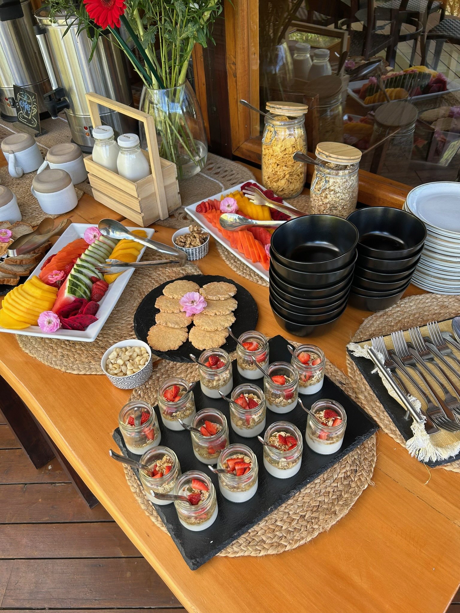 • 3 freshly prepared, locally sourced vegan meals per day and snacks